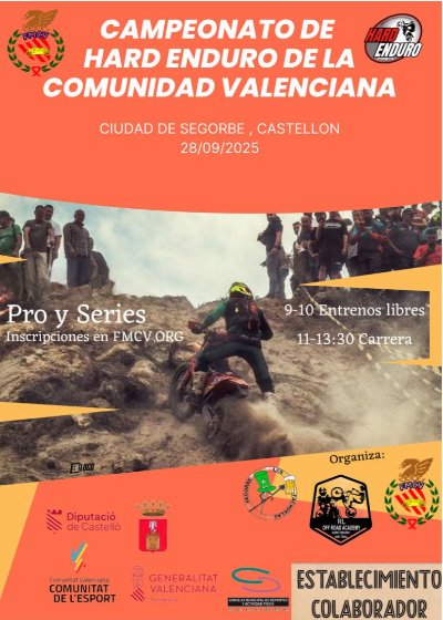 CAMPEONATO COMUNIDAD VALENCIANA III Hard Enduro de Segorbe ( CS ) 28.09.25 Información Lista de inscritos Horarios Orden de Salida Clasificaciones Entrenamientos Scratch Categorías Vuelta Vuelta Planing