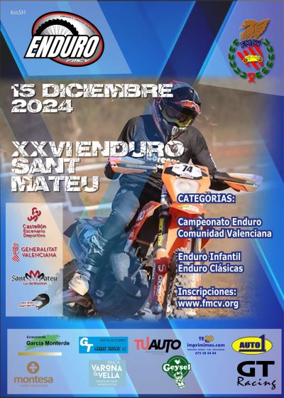 CAMPEONATO COMUNIDAD VALENCIANA XXVI Enduro de Sant Mateu 15.12.24 Información Lista de inscritos Orden de salida Horarios controles Clasificaciones Crono Tramo Categoriás